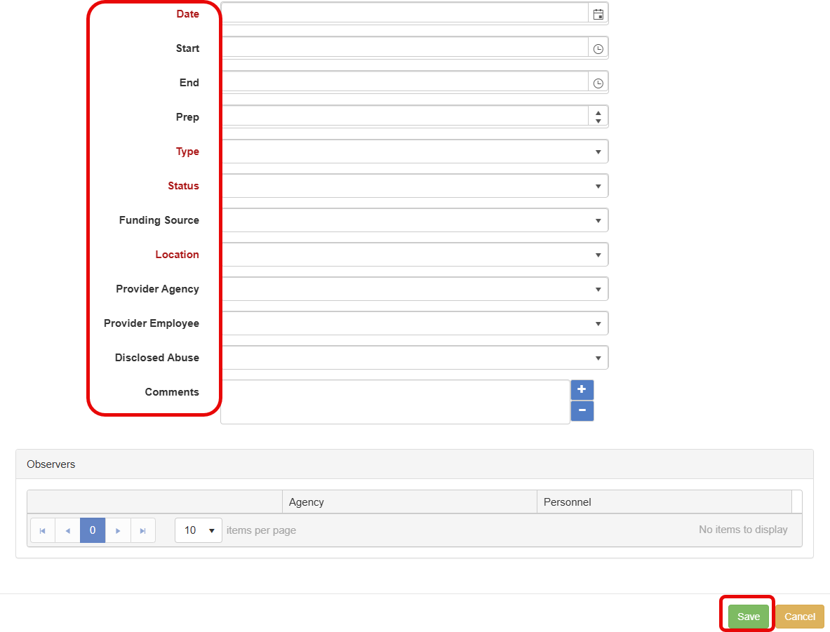 NOTE: Only after saving an FI session log will you be able to add Observers. Once the FI session log has been saved, click on the “Edit” button beside the session to add observers to the FI.