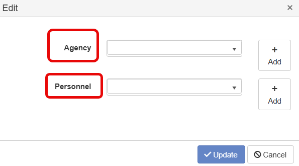 A dialog box will appear where you can enter more information about the observer. Select the “Agency” the observer is from and the individual’s name from the “Personnel” drop down list.